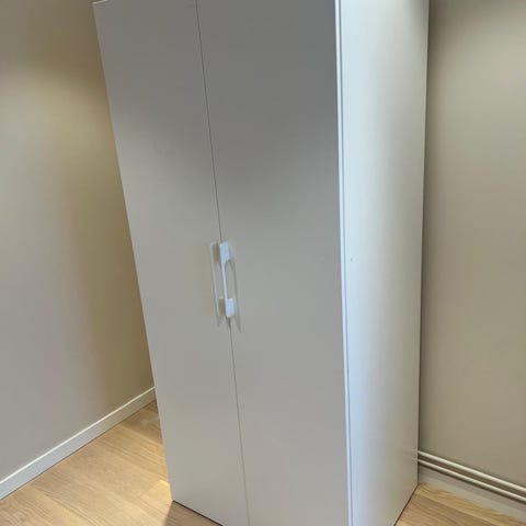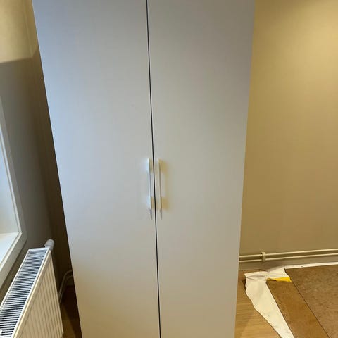 IKEA garderob i vitt utförande. Garderoben har två dörrar och ett hyllplan med klädstång för upphängning av kläder. Passar perfekt för långa kläder i kombination med skor under hyllan och liggande kläder/linne ovanpå hyllan. Nypris ca 1500 kr. Säljes för 500 kr. Har ytterligare en liknande garderob utan extra hyllplan. Även den säljes för 500 kr. Båda säljes för 800 kr tillsammans.