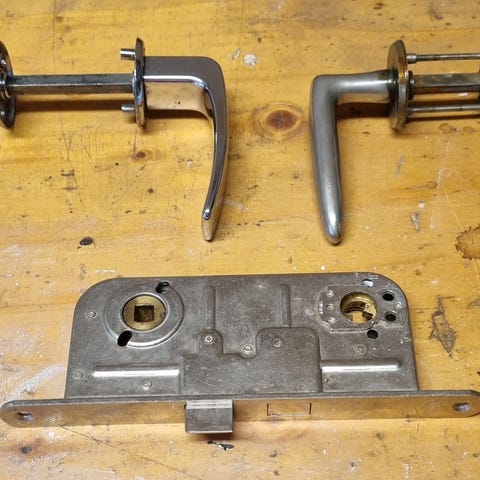 Pga felköp och öppnad låda säljer jag ett handtag till ytterdörren från Habo.