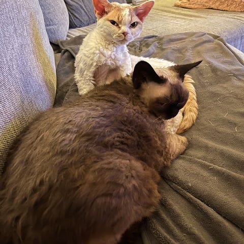 Hon har underbara personligheter, är väldigt sällskapliga, älskar barn och är riktiga knäkatter🥰.