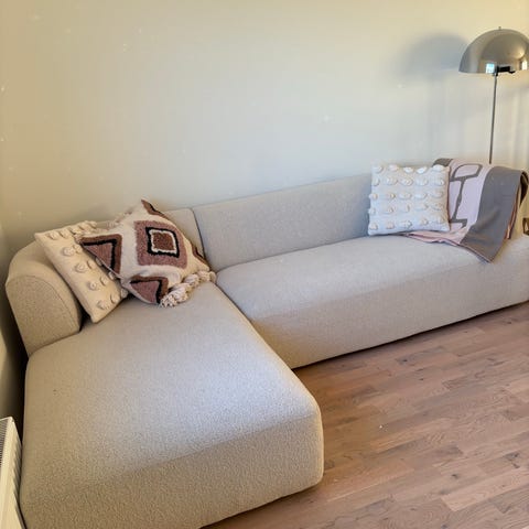 Säljer 3-sits schäslongsoffan ALLESE höger i beige tygklädsel. Knappt 1 år gammal och stått i ett extra rum så inte använd mycket. Kan ej spegelvändas.