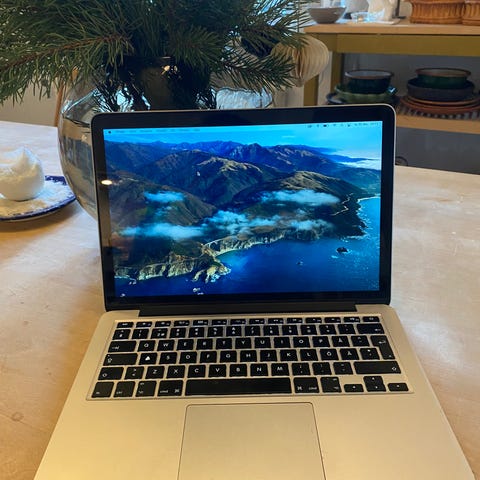 Apple MacBook Air 13" bärbar dator med rosa marmormönstrat skin. (Silver under)