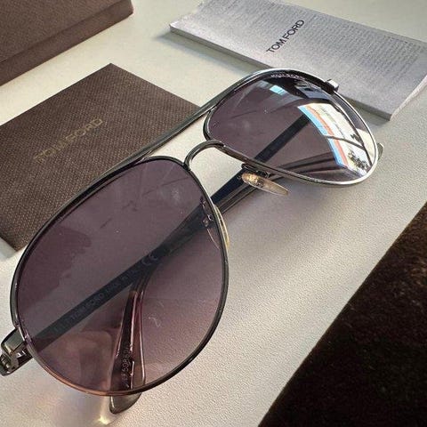 Tom Ford solglasögon för unisex i brun färg. Glasögonen har en rektangulär båge och mörka linser.