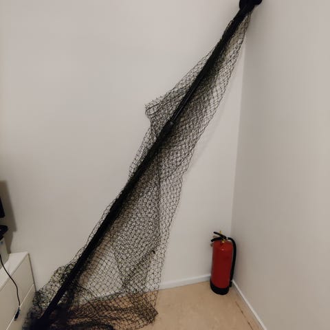 NYTT, OANVÄNT: Kattnät 8x3m, teleskåpstänger och klämmor till balkong. Nypris för allt var 2283kr på Zooplus.
