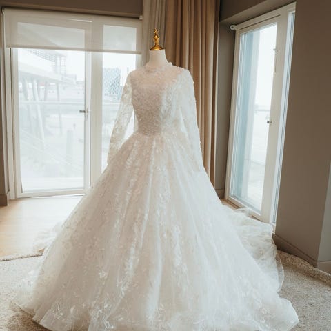 Brudklänning med brudslöja