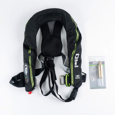 • Reflexer, visselpipa och D‑ring för dödmansgrepp.