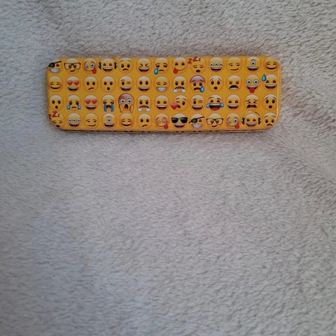 Hårt pennfodral i genomskinlig ljusrosa plast med hjärtan på.