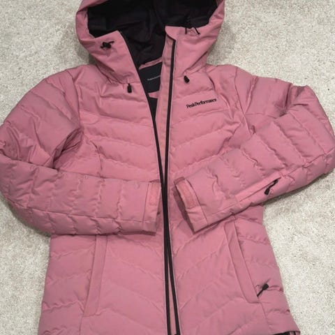 Peak Performance Vinterjacka i storlek L för kvinnor. Jackan är svart och tillverkad av dun, vilket ger värme och isolering under kalla förhållanden. Passar för användning under vintermånaderna.
