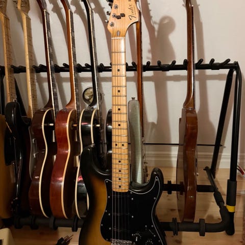 Vad jag vet allt original invändigt, små lacksläpp på greppbrädan samt lacksprickor intill halsplattan finns, annars väldigt välbehållen.