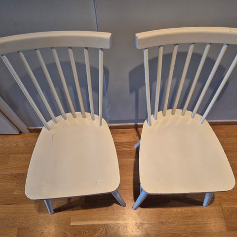 4 stycken röda köksstolar och en röd pinnstol