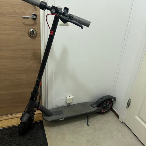 Xiaomi Mi Elscooter i svart färg. Inkluderar laddare och reservdäck samt pump för däcken. Elektrisk scooter med handtag för styrning och halkfri plattform för fotstöd. Upp till 25km/h. Kvitto och original lådan finns kvar. Har knappast använts.