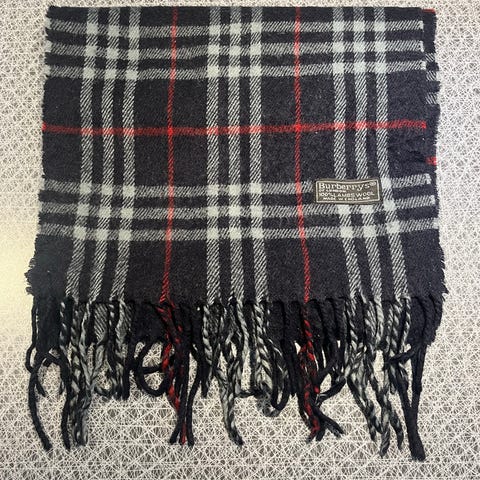 Burberry halsduk i röd färg, tillverkad av 100% ull. En storlek som passar män. Halsduken har klassiskt rutmönster och fransar i ändarna.