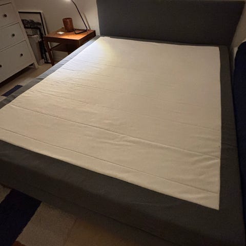 Dubbelsäng från IKEA. Har stått i ett gästrum & jag kan räkna på en hand hur många gånger sängen sovits i.
