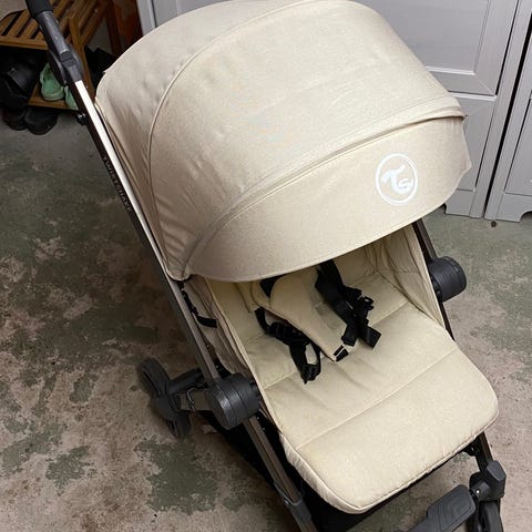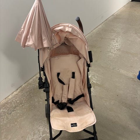 Endast använd som resevagn vid 2 tillfällen. Medföljer myggnät, regnskydd, åkpåse, sittinlägg, parasoll, mugghållare, mobilhållare