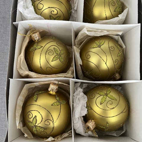 Två julgranskulor i glas från Illum med 6,5-7 cm i diametern. Julgranskulorna är aldrig använda och därför i väldigt fint skick.
