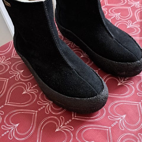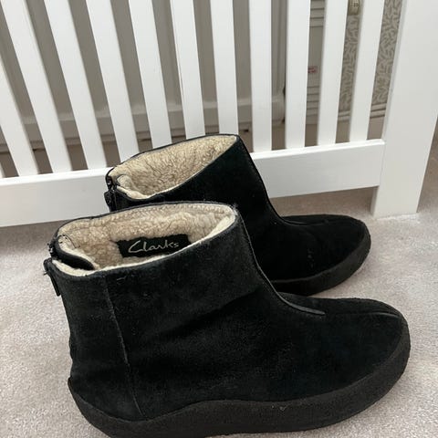 Clarks vinterskor i storlek 40, tillverkade i vinröd mocka. Skorna är fodrade med 100% naturlig fårull för isolering och komfort vid kallt väder. Sulan är svart med ett mönster för bättre grepp. Använda endast ett fåtal gånger. Finns i Saltsjö Boo, Nacka eller vissa tider i Nacka Strand.