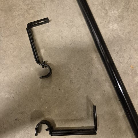 Gardinstång med två krokar, tillverkad i metall. 110-190 cm.