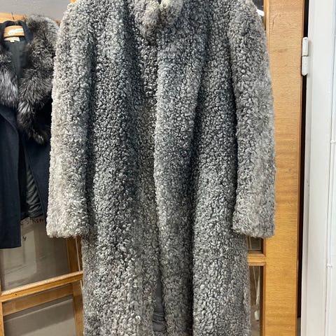 Lång päls går till vaden på mig som är 170 cm. En hyska är trasig .