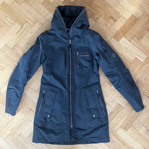 Fin blå-grön Goretex parkas med dunfoder XS