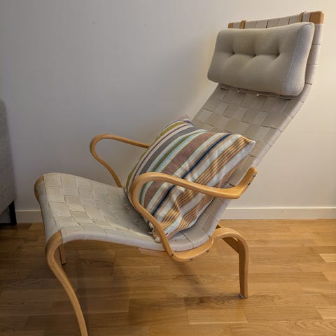 Bruno Mathsson fåtölj Mina i blått ulltyg