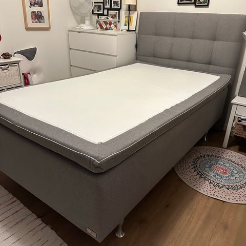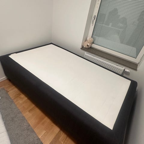 Ljusgrå 120 säng från Mio. Inköpt 2018. Varsamt använd av dottern i huset så i fint skick. Hel o ren.
