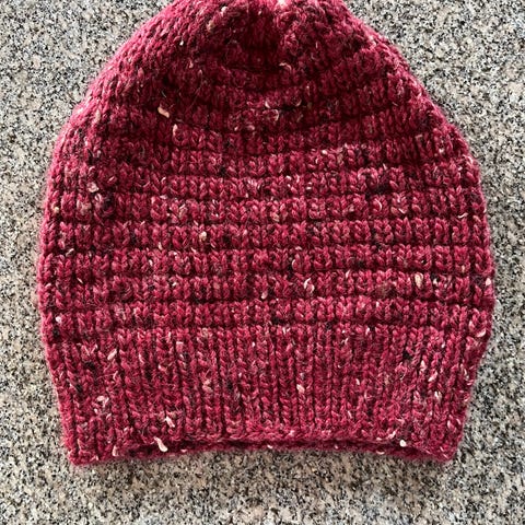 Helt ny, handstickad tröja i strl L i rött ( blyertsgrå, grått och svart i oket ), 75% ull och 25% akryl, tvättbar i 40 grader. Den är 46-47 cm mellan armhålorna.