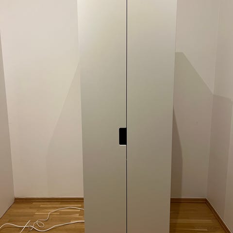 Garderob en har 3 lådor, 2 trådbackar och stång.
