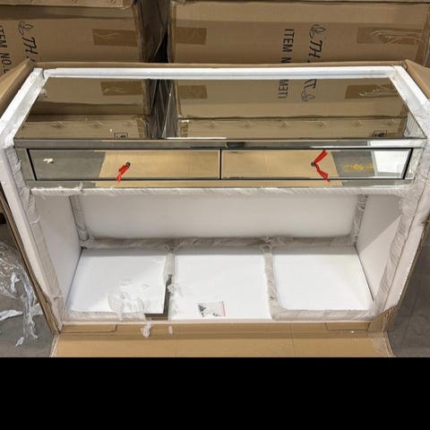 Säljer ett stilrent sminkbord med tillhörande stol i guldfärgad metall och glasskiva. Justerbar spegel. Perfekt som sminkbord, skrivbord eller dekorativ möbel i sovrum eller hall.