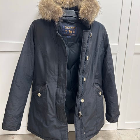 Säljer en svart vinterjacka från Woolrich i klassisk parkasmodell. Jackan är mycket varm och passar perfekt för kalla vintrar.