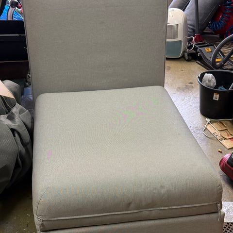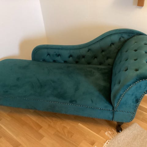 Riktigt skön och mysig schäslong i ljus beige. Synligt använd med charmig patina, men fortfarande bekväm att sitta i. Perfekt för avkoppling, läsning eller soffhörna i hemmet.