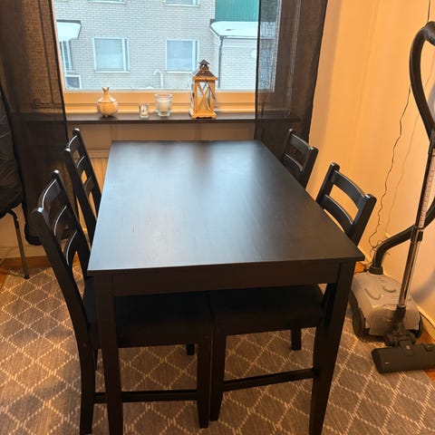 Matgrupp från Ikea. Bordet är från serien Ingatorp och stolarna från serien Norrnäs.