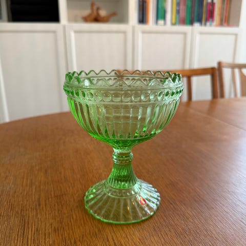 Säljer ett fint grönt serverings fat till bra pris. Grönt glas, och passar bra att lägga på kakor eller annat när man har gäster över.