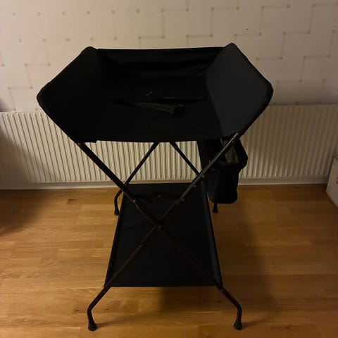 Jollyroom skötbord. Möbeln har en övre skötplats med kanter för säkerhet, en låda för förvaring samt två öppna hyllor under för ytterligare förvaring. Några märken som lätt går att fixa om man vill. Nypris är 1199kr, säljer den för 350kr.
