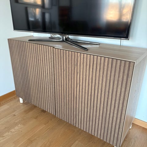 Snygg och praktisk TV-bänk säljes på grund av flytt. Bänken har tre utfällbara fack med gott om förvaringsutrymme och passar bra för både TV, spelkonsoler och tillbehör.