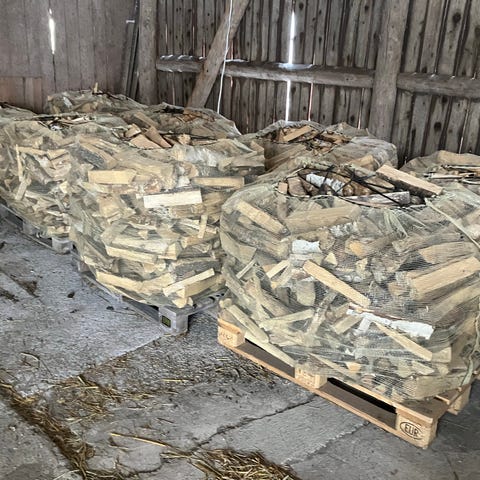 Blandved, sågad och huggen i april -25.