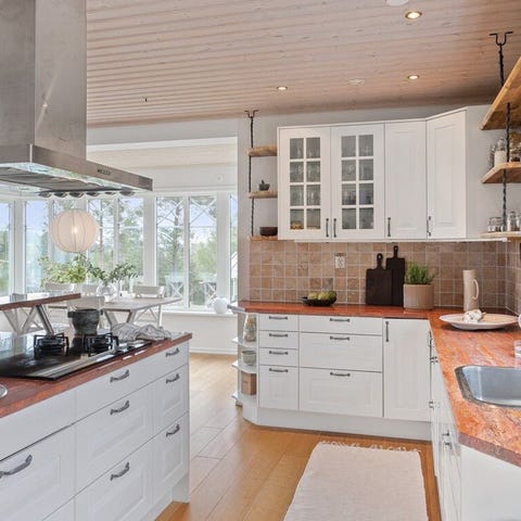 Kök enligt bilder. Vitvaror plus 12 år. Vet inte mer än så. Fin gasspis och lite nyare micro.