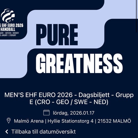 Då jag fått förhinder denna dag måste jag sälja mina biljetter till handbolls EM i Kristianstad!