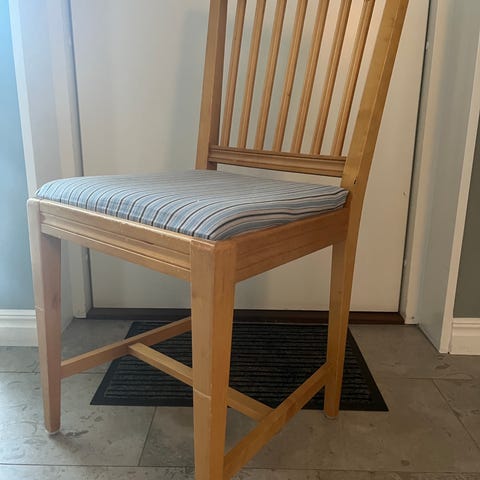 Traditionella leksandsstolar, stabila! Men patina i färgen och fläckar på vissa stolsdynor därav priset som avser alla fem stolar.