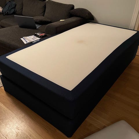 Jag säljer nu en 105cm bred säng. Sängram från IKEA och en memoryfoam bäddmadrass (nypris 3000kr) inköpt på Jysk i september. Sängramen är egentligen i blått tyg, på bilder har jag satt på ett lakan.