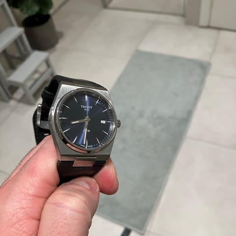 Äkta Tissot PR100 Flyback Chrono Alarm kronograf armbandsur. 100m vattentålig och kronograffunktion. Levereras i originalförpackning.
