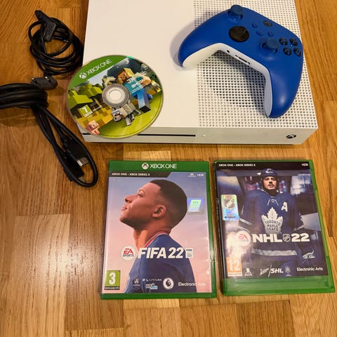 Xbox One S med handkontroll och 10 meter optisk HDMI-kabel