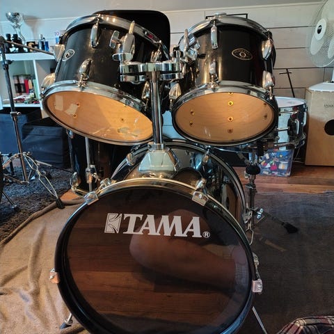 Litet trumset med bas- och virveltrumma, perfekt för små utrymmen eller om man vill spela tyst. Fint skick. Inköpt ca 2022, nypris ca 3700 kr. Hämtas i Norrtull.
