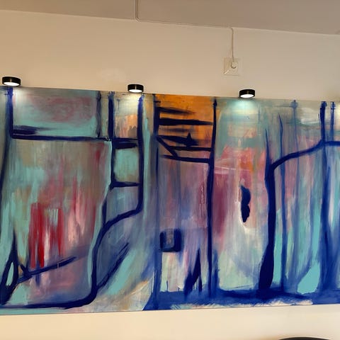 Säljer tre moderna konstverk målade med högkvalitativ akryl på duk. Varje målning är i stort format (ca {120 x 200} cm), vilket gör dem idealiska för stora väggytor.