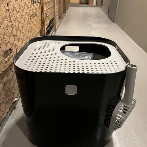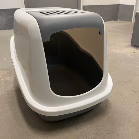 Stor och rymlig kattlåda med gott om utrymme och en matta som fångar upp kattsand från katterna och är enkel att hälla tillbaka igen i kattlådan