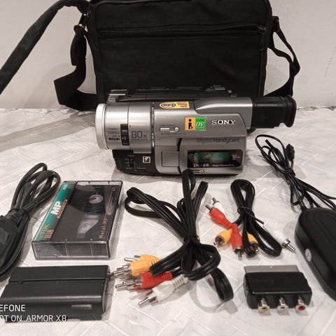 DCR-TRV340E Digital8/hi8/Video8 8mm fint skick, Sparsamt använd, kan också hantera alla typer av 8mm, som hi8 video8, 8mm band, funkar FELFRITT . Denna kamera kan även pelar upp Digital8 (D8) band , jättebra utrustningar för att Digitalisera dina gamla video via DV /firewire/i-Link, har S-Video och AV utgångar också . Det innebär att du kan koppla kamera direkt till dator med hjälp av firewire /dv kabel via DV /FIREWIRE utgång på kamera. Du kan även spela upp på tv. Man kan också föra över video med hjälp av Easycap kabel via AV /RCA utgångar.