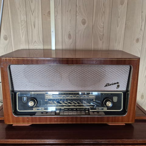 Telefunken concertino jubileums radio 1953 i originalkartong. Fint och behagligt ljud. Med diskant och bas m.m. Beställd genom firma Erik Ädel i Torsåker på 50-talet och levererad av Aktiebolaget Trådlös Telegrafi från Liljeholmens station, enligt fraktetikett på kartongen. En knapp är defekt och behöver tryckas fast. Knappen längst till vänster. Eventuell köpare får ombesörja detta. Unik med originalkartong. Säljes 1800:-