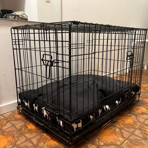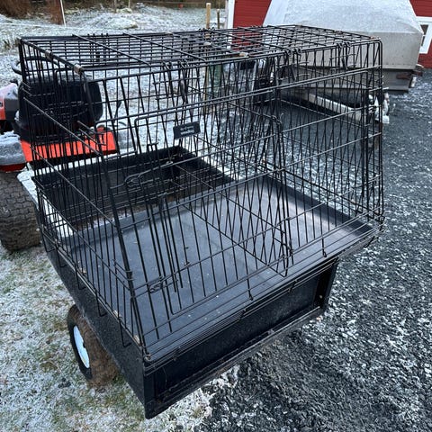 Metallbur för husdjur med gallerdesign. Buren kan fällas ihop för enkel förvaring och transport.