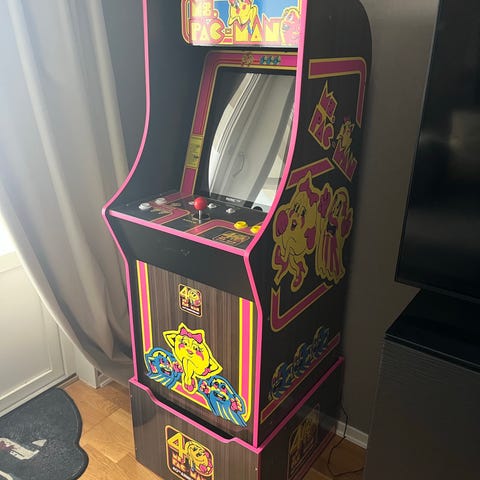 Donkey Kong Arkadspelautomat med flera klassiska spel integrerade. Maskinen har en skärm och kontrollpanel med flera knappar och joystick för spelkontroll. Designad i orange färg med Donkey Kong-tema och grafik.