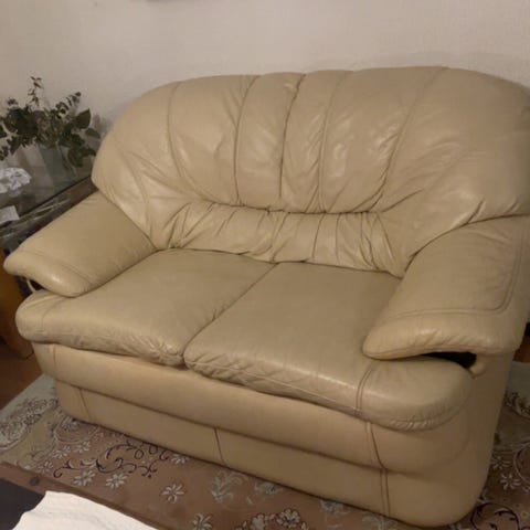 Säljer en svart skinnsoffa med divan från Mio.
