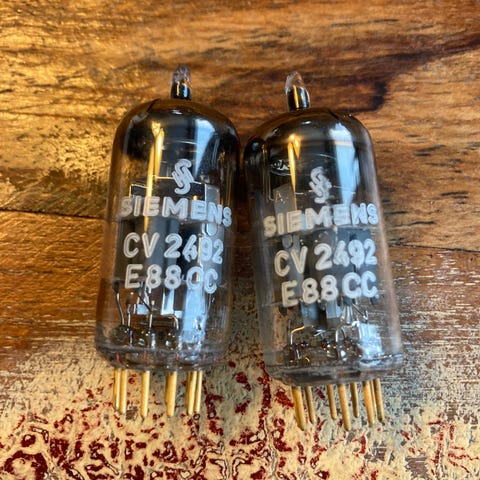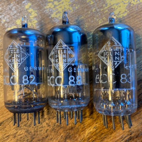 2 stycken Vintage General Electric (GE) elektronrör 12AX7WA. Ej testade men ser ut att vara i fint skick. Säljes utan garanti eller returrätt.