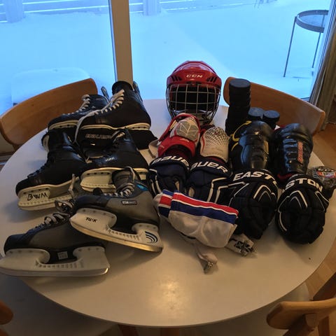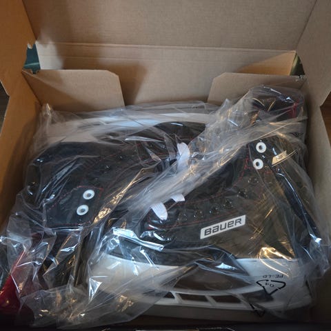CCM FL40 M ishockeyskridskor i storlek M. Skates är avsedda för ishockey och är utrustade med skydd och hjälm för säkerhet vid spel.